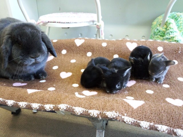 3月16日生まれのホーランドロップの赤ちゃん4羽のカラーが大体分かってきました