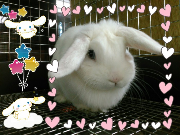 プロペラ&たまにネザーになる 😀 ホーランドロップ(ブルーアイドホワイト)のピュアです。春だからとかは、関係ないですが、持った感じは産みそうな感じですが・・・だたの〇ブ