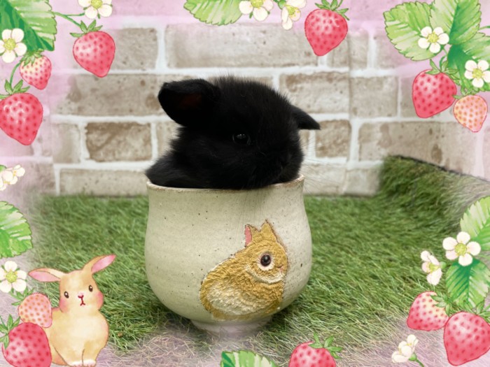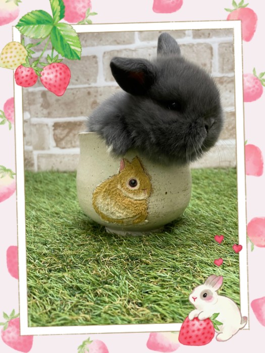 店頭デビューしてる!ホーランドロップ(ブラック)のオスですが!絶壁で、性格も良く育ってます。