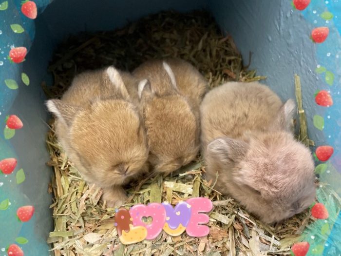 6月4日生まれ!ホーランドロップ(クリーム)ユリアの赤ちゃん達です。巣箱の上がトイレになってしまうユリアなんで、1日2回巣箱の掃除してます。