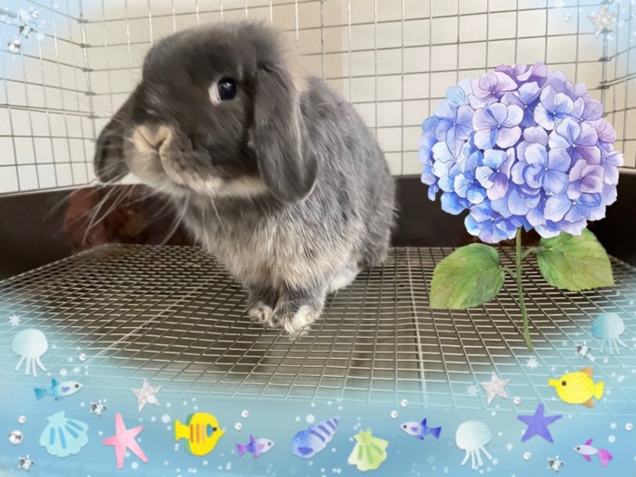 8カ月たった!ホーランドロップ(ブルーオター)のボスです。交配出来る相方まだ居ないので、ブリーダーさんにもLINE入れてますが、どうなるかな?です。