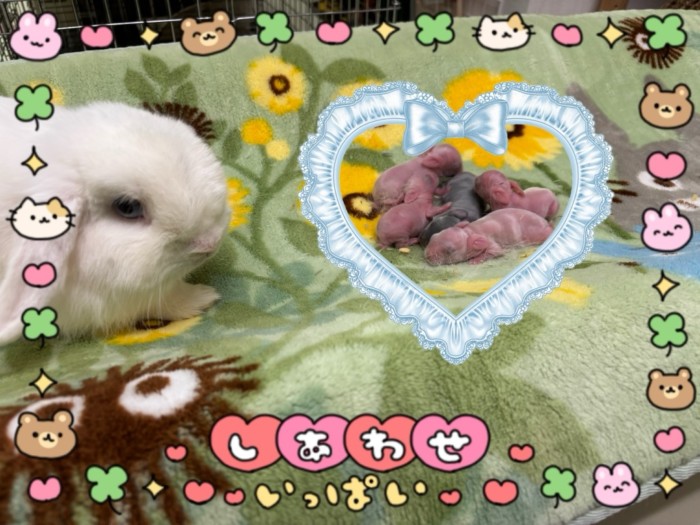 昨日!ホーランドロップ(ブルーアイドホワイト)のゴージャスが!5羽出産しました。&うさホテル満員となりました。