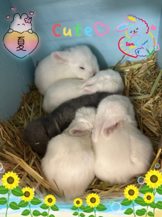 8月12日生まれ!ホーランドロップ(ブルーアイドホワイト)ゴージャスの赤ちゃん達です。1羽は!オパールでした。ダークカラーが!ポツンと居るといいんだよな~です。