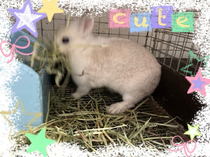 9月2日出産予定の!ネザーランドドワーフ(フロスティー)のスノーです。前回死産だっただけに今回はどうかな?です。ピンボケしてしまいましたが、チモシーを散らかしまくりでした(笑)