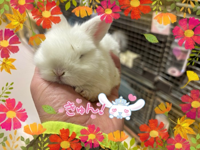 早々のご予約済みになった!10月27日生まれ!ホーランドロップ(ブルーアイドホワイト)ハッピーの赤ちゃんも土曜日から店頭デビューします。