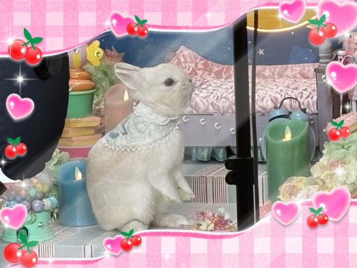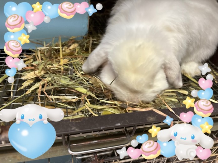 22日出産予定の!ホーランドロップ(ブルーアイドホワイト)のゴージャスが!また産みそうな感じしてます。まだ名前ないゴージャスの息子もコンパクトになりそうです。