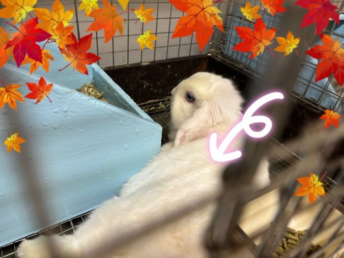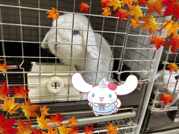 22日出産予定で!絶対産む!ホーランドロップ(ブルーアイドホワイト)のゴージャスです。交配は休ませ過ぎると産まなくなって引退になるので、持った感じの感触痩せ具合で判断してる毎回です。