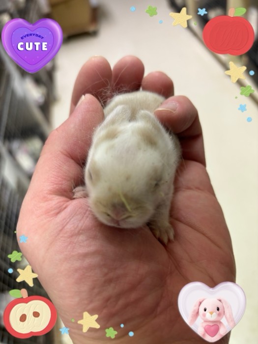 11月23日生まれ!ホーランドロップ(ブルーアイドホワイト)ゴージャスの赤ちゃんです。ローレンと!ローランと同じ配合なんで、多分ブロークンリンクスですが、この配合は!あるカラー出ないと当分続けていくと思います。