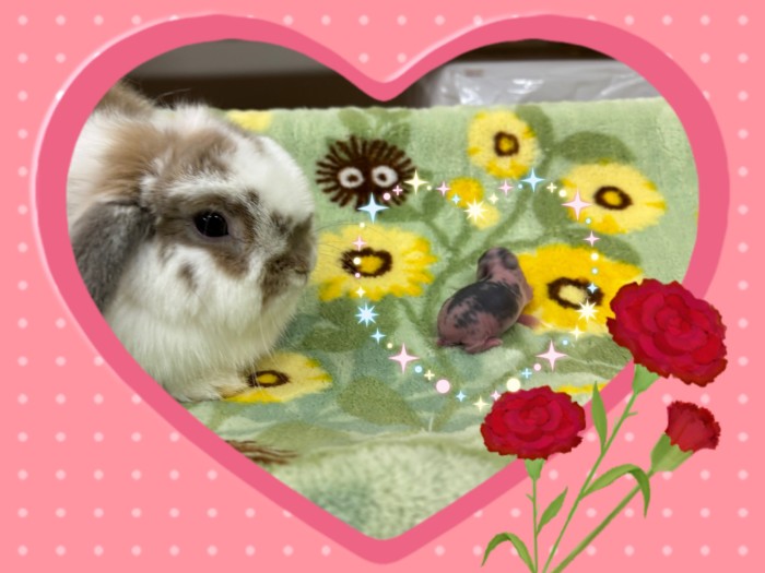 ホーランドロップ(ブロークンリンクス)ローレンが!1羽出産してくれました。ローランの妹か?姉?でもあるので仲良く(笑)1羽づつ育児頑張ってくれればです。