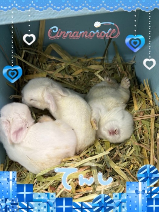 1月11日生まれ!ホーランドロップ(ブルーアイドホワイト)ハッピーの赤ちゃん達も!店頭デビューしました。性別分かり次第載せていきます。シワシワ感あって軽かった!スノーと、ビリーブの赤ちゃん達ダメでした。少し休ませてから、また交配していきます。