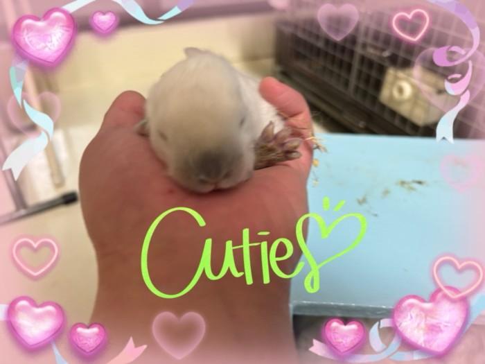 2月6日生まれ!ホーランドロップ(ブルーアイドホワイト)ゴージャスの赤ちゃん達も土曜日から店頭デビューします。(ブルーアイ1羽ご予約済みとなってます。)
