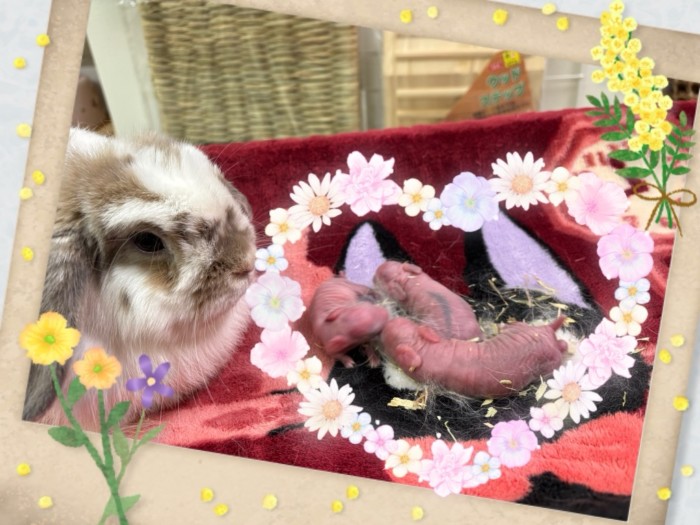 3月も好スタートです!!!ホーランドロップ(ブロークンリンクス)のローレンが!3羽出産してくれました。成長をお楽しみ。