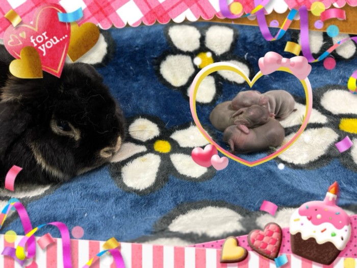 ホーランドロップ(ブラックオター)のアイビーが!3羽出産してくれました。カラーは!チョコ系・ライラックに見えます。成長をお楽しみ。