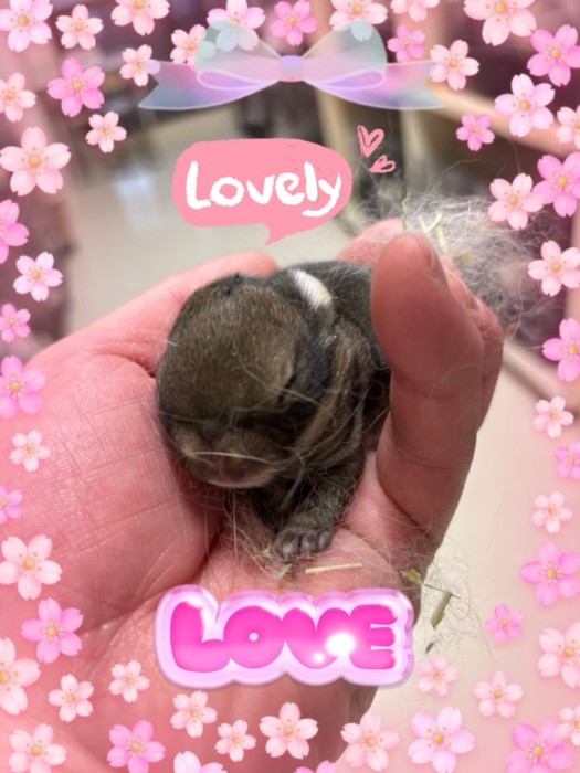 3月18日生まれ!ホーランドロップ(ブロークンリンクス)ローランの赤ちゃんです。1羽だけの怖さ知ってはいますが!今回は大丈夫そうです。